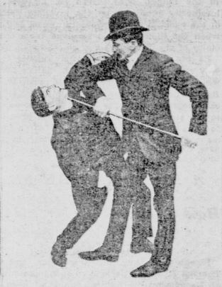 “As soon as she comprehended what his words meant, bang, biff! she landed right and left, and he fell to the ground…”