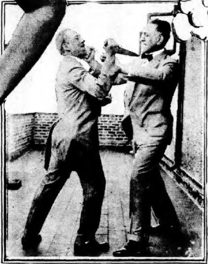 “Lee opened with a tremendous kick…Without a moment’s delay Wong dodged behind the giant and administered a terrible kick in the small of the back. Then he buried his sharp claws into Lee’s face, and rained kick after kick upon his body in rapid succession. Before the big fellow knew what had hit him Wong released his hold, dived under [Lee’s] legs and beautifully threw him. The bulky mass…dropped like a log, head first.”