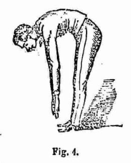 Get the opponent’s jacket bunched around his neck and clasp his head in an arm, the hand of which grasps the jacket by the side of the other hand. Entwine the leg nearer the opponent around his leg close to you in such a position that your toes come in front of his shin bone. (Figure 4.) Push the opponent’s leg out behind from under him, press down with the arms and pull his head under and his shoulders on to the floor. Executed in this fashion the grapevine corresponds in general to the “flying mare” in Cumberland and Northumberland.