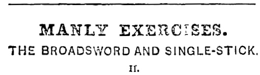 SIR—In last Saturday’s Centinel, you charge me with saying, that you know nothing of Fencing, &c—and invite me to a public trial of skill, &c—As to the scurrilous charge of my saying that you know nothing of the use of the Sword, I can in conscience deny it:—But, what I have said, and do now say, is this—That I believe you understand the Small Sword very well; but that you do not so well understand the Broad Sword;—so think some of your friends.