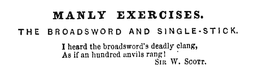 Sign of the Gladiators, Ann Street, near the Draw Bridge, Boston—who has had the pleasure of teaching the Broad Sword near forty years.