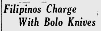 “Refugees streaming into Manila today, disclosed that hundreds of Filipino civilians, armed only with bolo knives or bamboo poles, had charged into Japanese rifle and machine gun fire beside United States and Philippine troops to hold off the invaders in Southern Luzon.