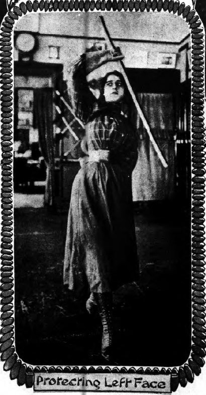 “Now. ladles, move guard—protect your right—face! Parry—vatch se point of ze opponent’s club—advance—vatch ze opponent—now—retreat quick—parry—allons—move quick, Von, two, dree! Deceive, pass under and parry on ze left. First position—sat is bettare!”