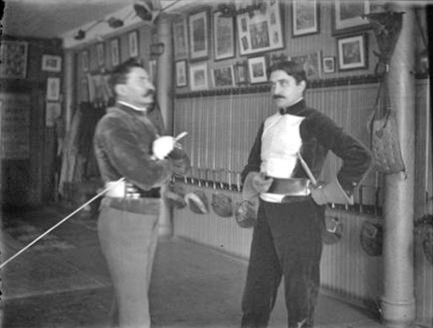 “On guard!” shouts M. Louis, the son, moving an unskilled arm over the head of its owner.