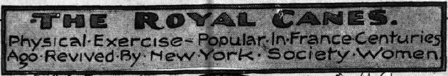 Most of our “royal caners” are under the direction of a well known fencing master. Many are young women holding brilliant social positions. The professor in question has a class of society matrons who are candidates for honors as “caners,” and are determined to become experts in the newest fad sent from over the ocean.