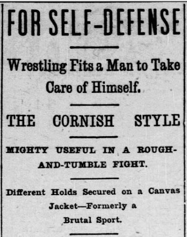 “In nearly every man’s life, whether he will or no, a time generally comes when he is dragged into a rough-and-tumble fight. Then, if he knows something of Cornish wrestling, he will be able to take care of himself admirably…”