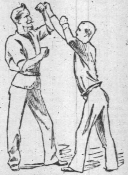 A few days ago a gang of laborers were at work upon the foundations of a new building in the business portion of the city when one of them, a burly Celt, objected to the order given to him by the superintendent of the work. The latter, a fine-looking splendidly-proportioned man of 30 or thereabouts, insisted on the fulfillment of his instructions. He was fashionably dressed, but it was very evident that he was a man who would stand no nonsense. The laborer demurred, and the superintendent insisted. The refractory Hibernian muttered. something about “not taking no orders from no blankety-blank swell.” There was a cold, steely gleam In the eyes of the superintendent. He approached the recalcitrant knight of the hod and let out his right arm with the swift direct movement of a piston-rod. His clenched fist came into contact with a Milesian jaw, and a burly son of Erin dropped down among the surrounding bricks and mortar. A neater and more effective blow was never struck by the human fist. The discomfited laborer presently picked himself up, shook the brick dust from his hair, and went to work. The gladiator in broadcloth saw his order executed and went his way, followed by the admiring glances of the bystanders.